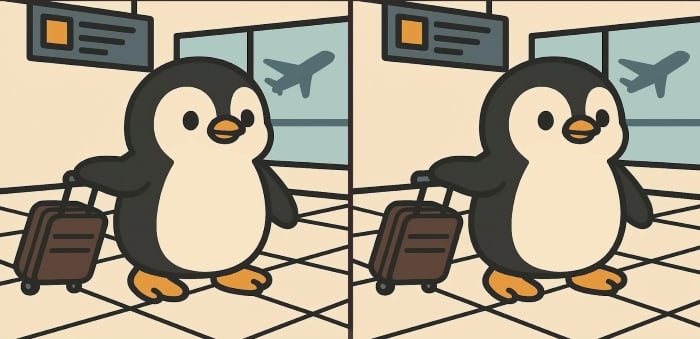 Készen állsz a következő kihívásra? Nézz meg alaposan két képet, amelyeken egy aranyos pingvin látható, amint csomagokat cipel a reptéren. Lehet, hogy első pillantásra egyformának tűnnek, de 3 apró különbség rejtőzik rajtuk. Gondolod, hogy 61 másodperc alatt mindet megtalálod? Próbáld ki, és teszteld a látásélességedet!