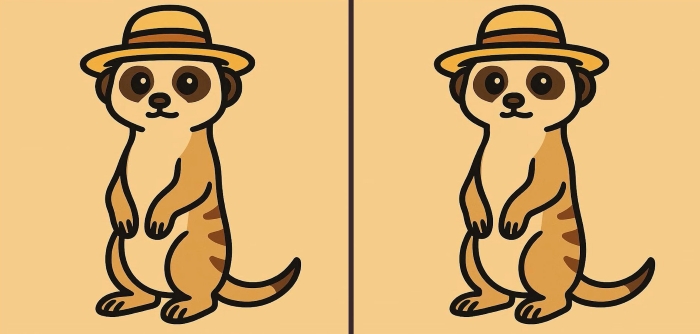 Készen állsz a következő kihívásra? Nézd meg alaposan a két képet, amelyeken egy sapkát viselő szurikáta látható. Első pillantásra ugyanúgy néznek ki, de van 3 apró különbség. Gondolod, hogy 49 másodperc alatt mindet megtalálod? Próbáld ki, és teszteld a látásélességedet!
