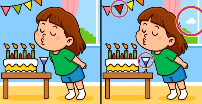 Készen állsz a következő kihívásra? Nézd meg alaposan a két képet, amelyeken a lány elfújja a gyertyákat a tortán. Lehet, hogy első pillantásra ugyanúgy néznek ki, de van 3 apró különbség. Gondolod, hogy mindegyiket megtalálod 31 másodperc alatt? Próbáld ki, és teszteld a látásélességedet!